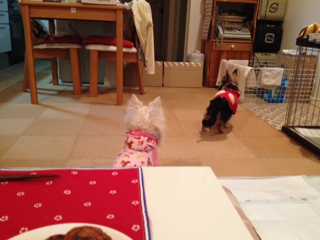 今まで、オヤツの時など、ピューっと飛んでくるたんぽぽちゃんに対し、どこでオヤツがもらえるのかポカンとした顔できょろきょろしているトコたんが可哀想と、抱っこして移動したりしてたのですが、やめました(^_^)