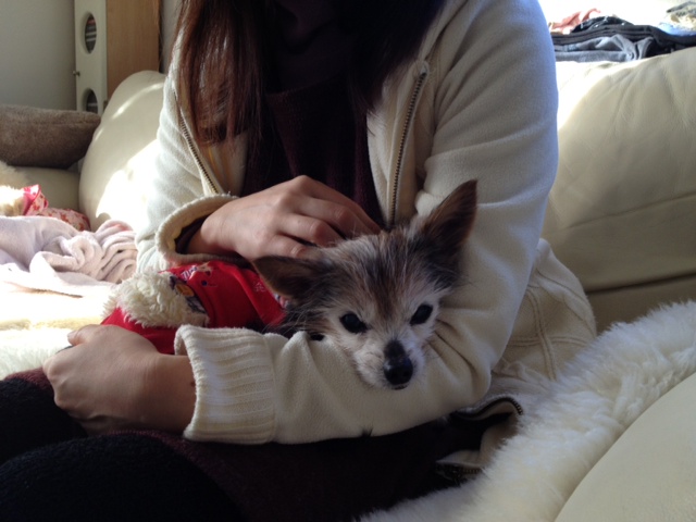 わが家に来て2ヵ月、私達が一緒で少しは安心できるようになったのかな~と思い、ちょっと嬉しくなりました。