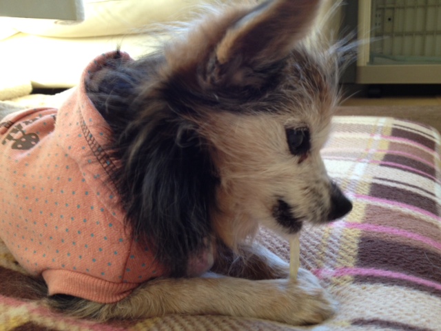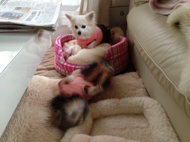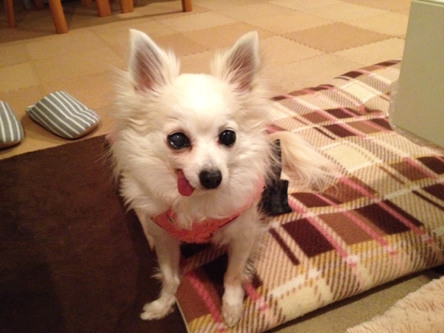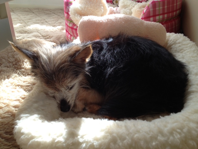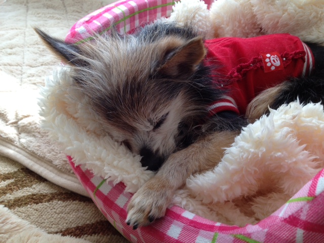 「なんだか、オヤツの量が半分になった気がするのよね~。トコが寝ている間に、こっそりもらわなくちゃね。エヘッ。」ちゃんと、今までと同じだけあげてますよ~(^_^;