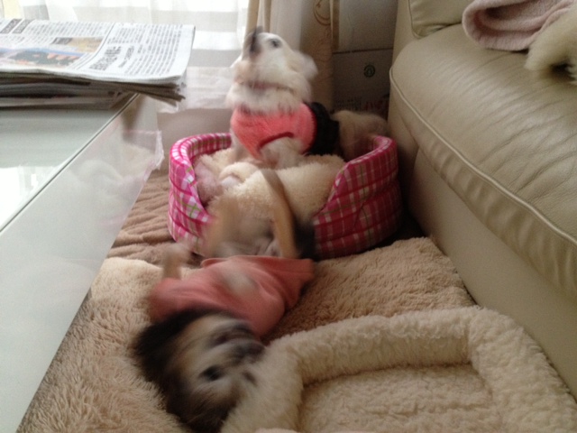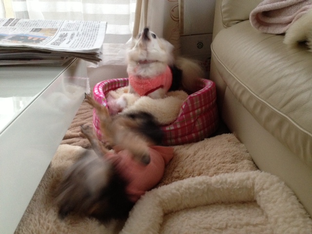 さて、オジチャンがとってくれた、トコたんとたんぽぽちゃんの日常写真です(^m^)