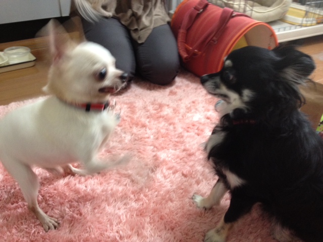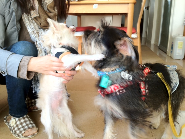 先住ワンちゃんがいるので、お見合もお宅にお邪魔してだったのですが、ウィスパー君おうちがとっても気に入って大はりきりだったんです。