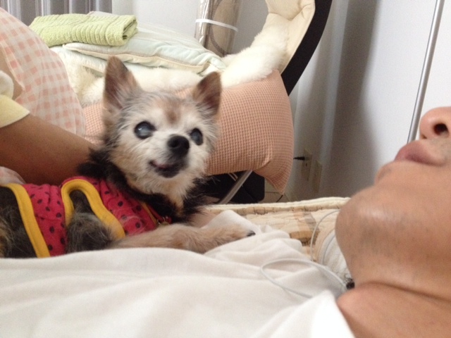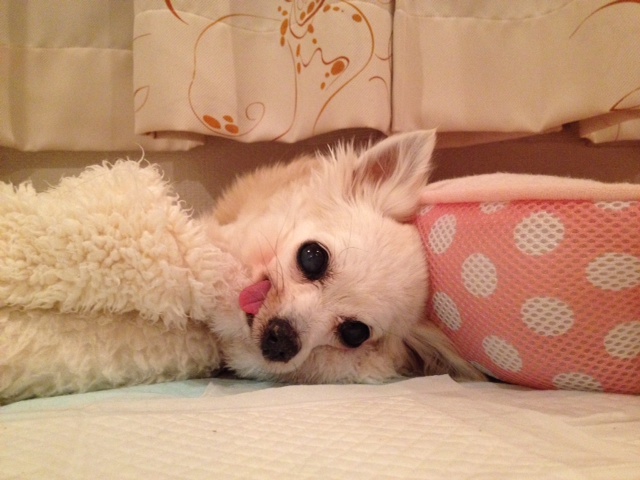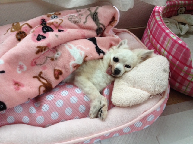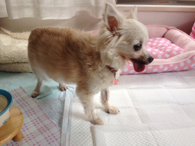 もともと左後脚がバテラのグレードⅡ~Ⅲで、それをかばって歩いていた右脚の靭帯を痛めて、今度は右脚をかばって酷使していた左脚がグレードⅣに・・・はずれっぱなしになって、とうとう歩けなくなってしまいました。