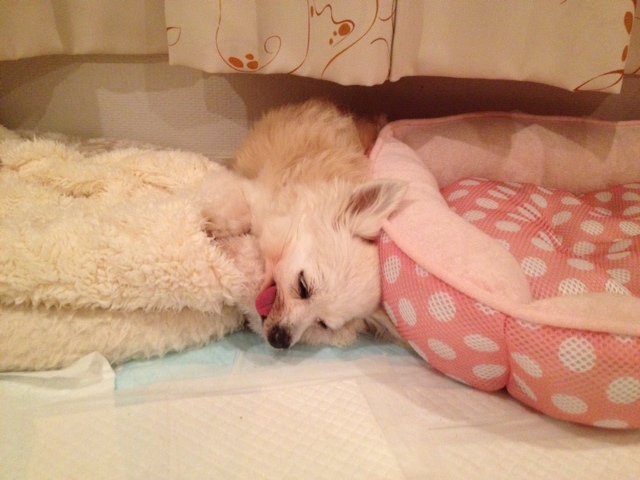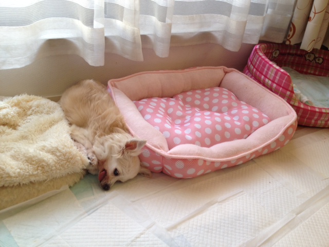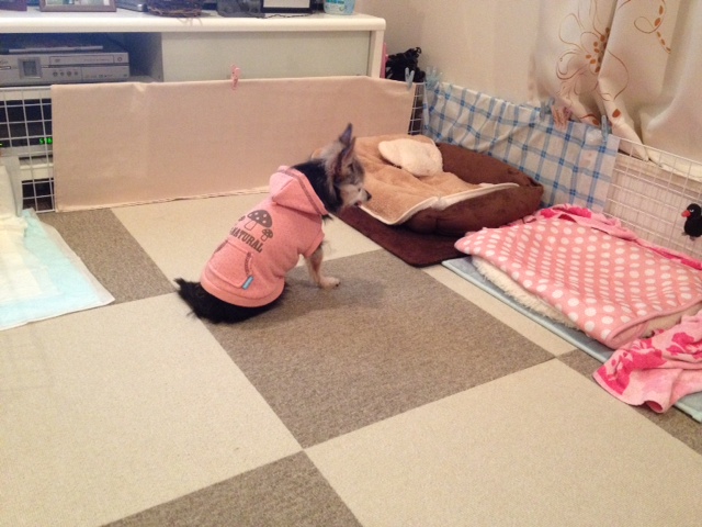 歩けているうちは、まだ多少は対処に余裕があったのですが、今は転んだ体勢が悪いとちょっと大変な事になってしまうので、夜はそばで寝る事にしました。