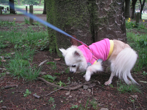 犬のたんぽぽちゃんは、花よりも木の幹についている匂いの方が興味あったみたい(^m^)