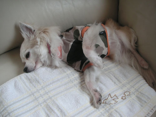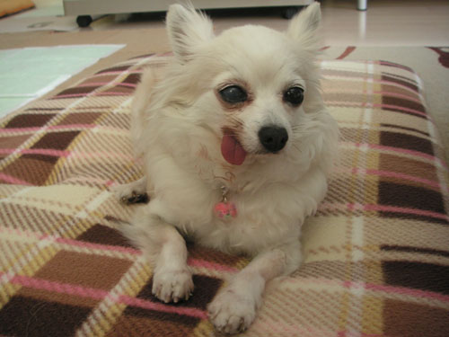 ふわりちゃんは、2006年5月25日にセンターから引き出され、我が家で半年ほど預かりっ子生活を送り、11月23日に新しいおうちに迎えて頂きました。