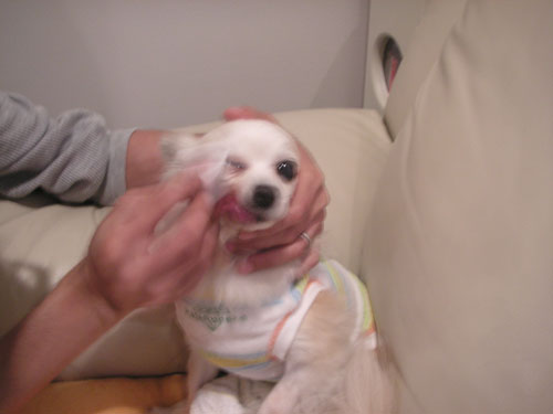 たんぽぽちゃんの目は、目薬のおかげで少しはいいみたい。