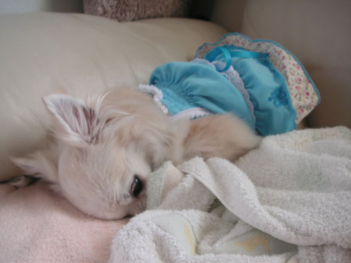 暑くなってきて、たんぽぽちゃんのお昼寝にもちょっぴり変化が。