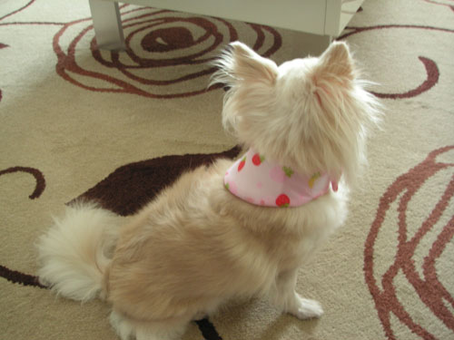 おしゃれじゃなくって涎掛けかわりにバンダナをまかれて「・・・・・」な顔のたんぽぽちゃんでした。