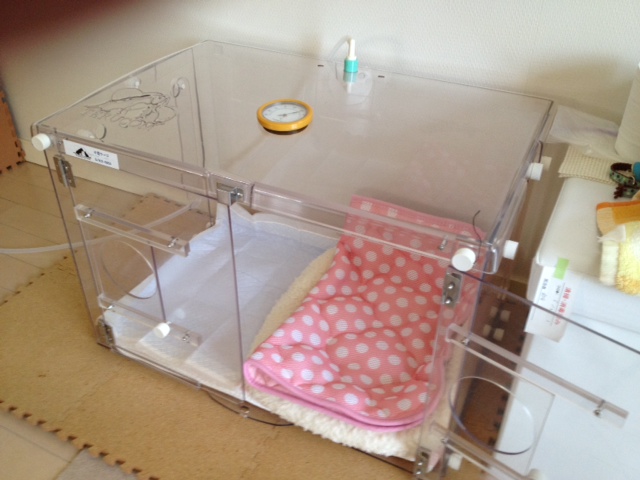 酸素室の準備ができて、たんぽぽちゃんは今日の夕方、我が家に帰ってきました。
