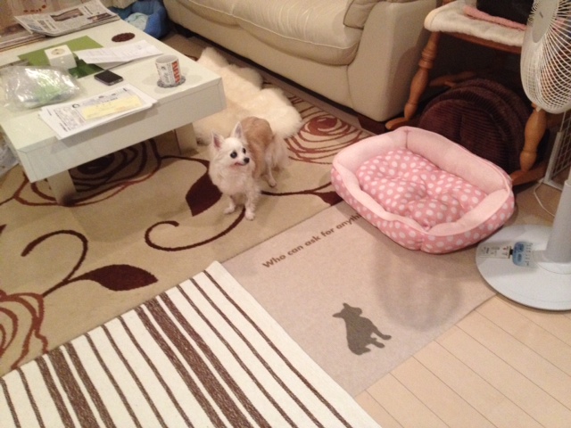 昨日、リビングのテーブルを壁際に寄せて、たんぽぽちゃんが動きやすいようにプチ模様替え。