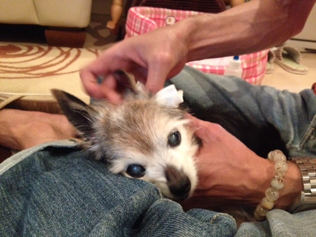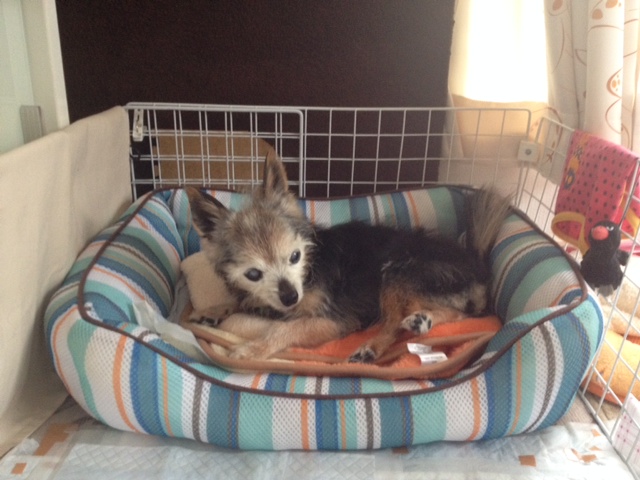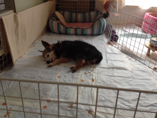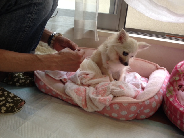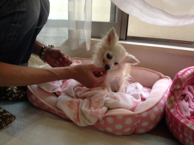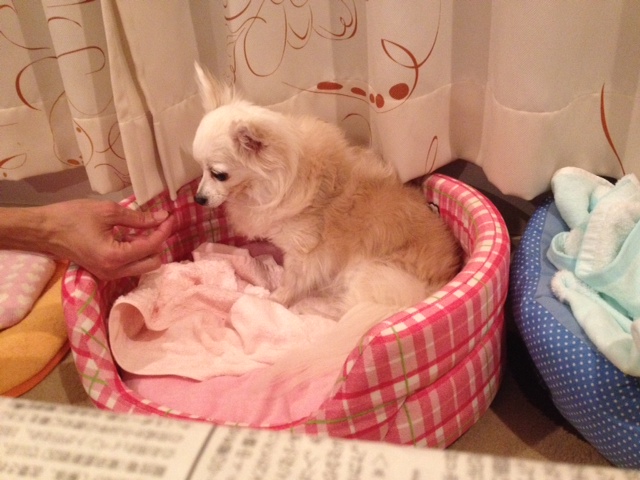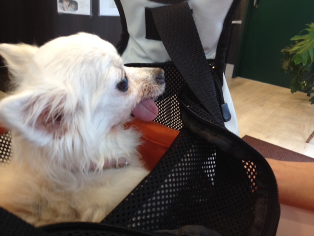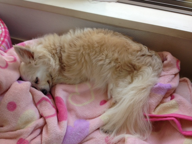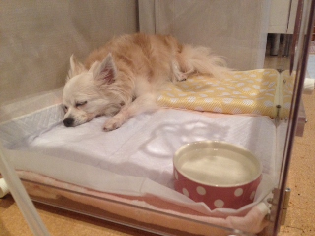 昨日の面会の時、入院初日よりは全然楽になったようで、チワワらしく「出して」って感じでウルウルした瞳で私とオジチャンをみてました。