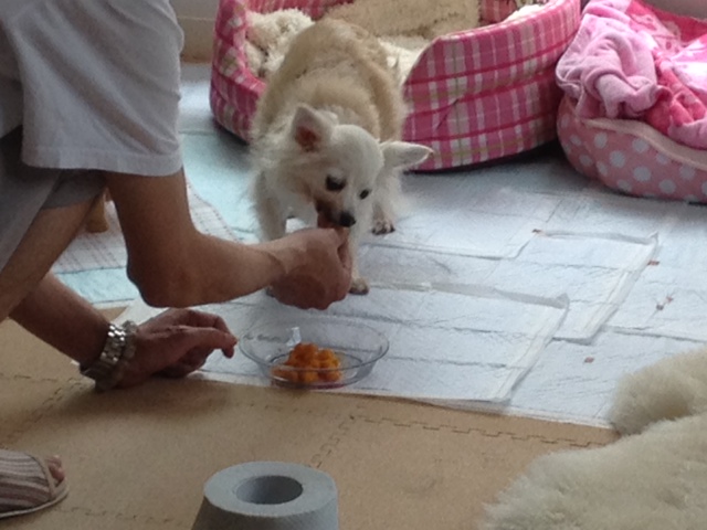 でも、随分楽になったようで、家に帰ってひとやすみすると、鶏肉や牛肉を結構食べてくれました。