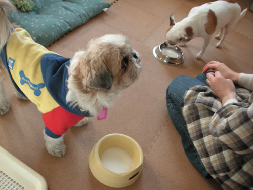 ・・・・・・と、実はちっちさん、ミルクがあまりお好きではなかったようでペロっとしただけでごちそうさまになっちゃいました。