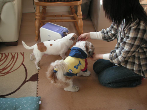代わりに別のオヤツをあげようとすると、早々と飲み終えたむーちゃんも参戦してきちゃって(^^;