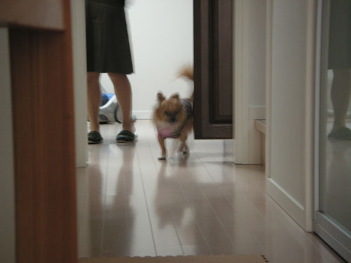 お散歩から帰ってリビングに戻ると、こてつは何やら待ち状態。