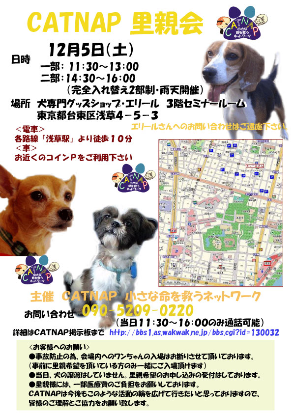 里親をご希望の方は、必ずCATNAPの譲渡に関するページをお読みに