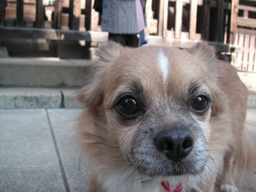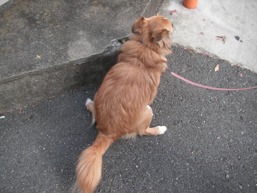 久しぶりに、神社にお礼に行くも・・・・・相変わらず恐がっちゃって本堂に近づかないこてつ(^^;