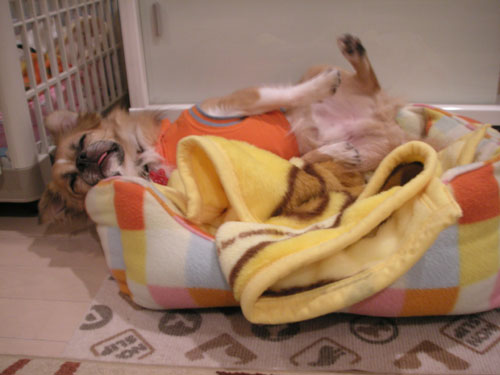 シャンプーの後は、今日は寒いのでオウチでヌクヌクしてまーす。