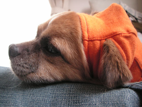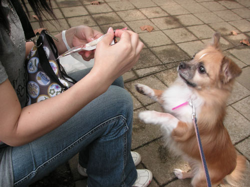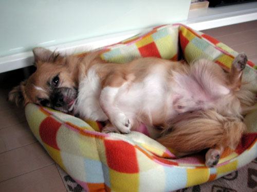 さて、連休最終日は昨日の歩き回った疲れがとれず(^^;午前中はゆっくり過ごしてたのですが、お天気もそこそこだし、こてつを連れて表参道の写真展でも行ってみようかしら~なーんて思いつつ、こんなことをしてみると・・・・・・・あきらかに小さい(--;