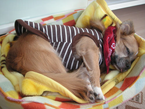 只今、オジチャンと爆睡街道まっしぐらのこてつです。