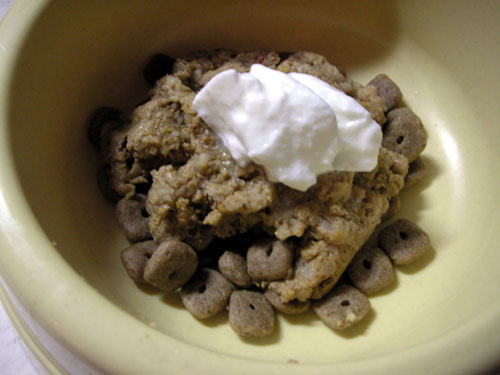 ドライとマンマリゾを半分ずつ。白いのはヨーグルトのトッピングです。