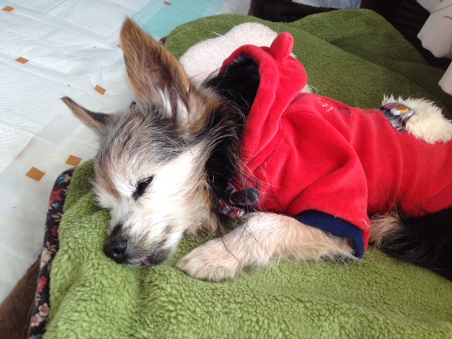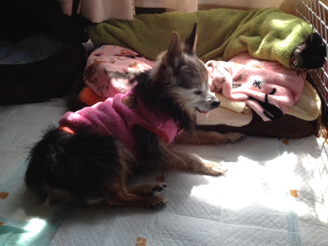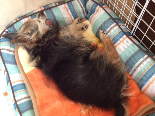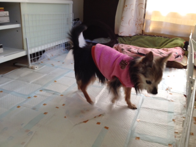 横になれない様子で、ベッドに入ってもお座りの状態だったり、落ち着かなくあっちこっちをウロウロしたり・・・。