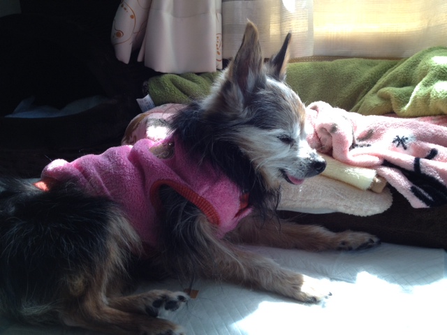 土曜の夕方、病院に連れていって、利尿剤を打ってもらって、別のお薬を出してもらって、今日は随分落ち着いてきました。