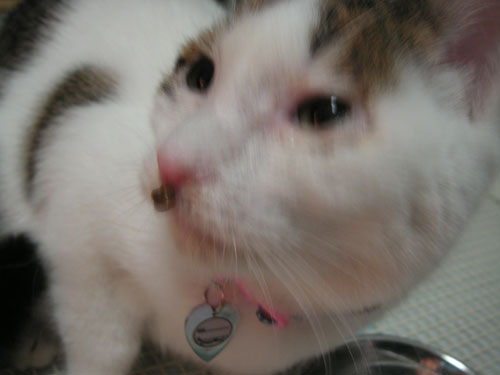 サクちゃんは、まだ子猫なのでびっくりしたみたいですね。
