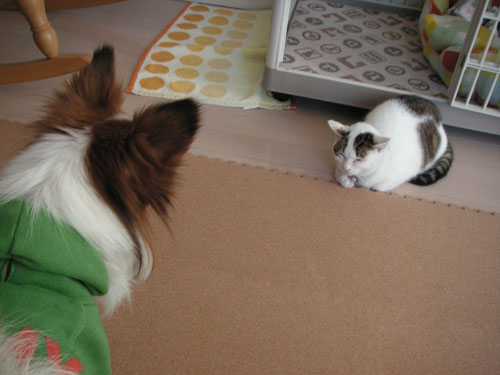 ズカズカと尻尾ふりふり入ってきたアルトにサクちゃんびっくりしてます。
