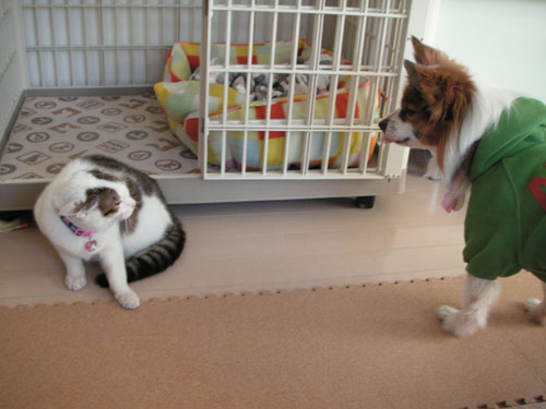 アルトが近付かなければいいのですが、やっぱりまだ慣れないらしくウロウロして鼻を近付けるので、サクちゃんに警戒されて何度も「シャー」とやられてます。