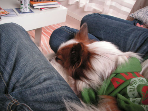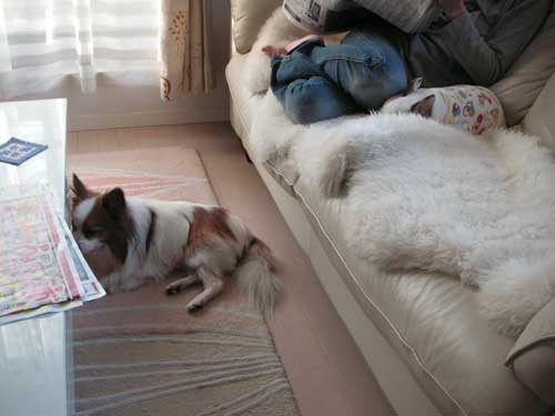 三代目預かりっ子だったちっちさんは、預かり当時のように人の近くのベストポジションをなにげなくキープ。