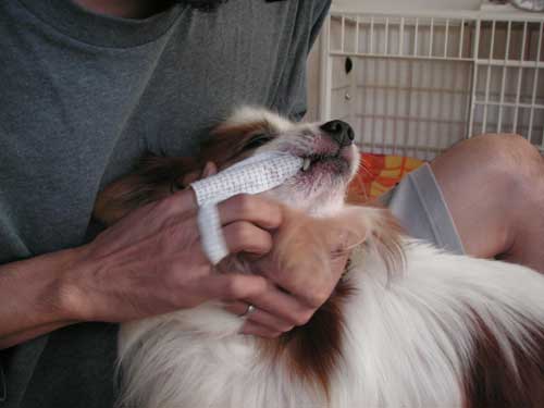 お散歩後の足拭きでは、相変わらずの「ウーウー」
