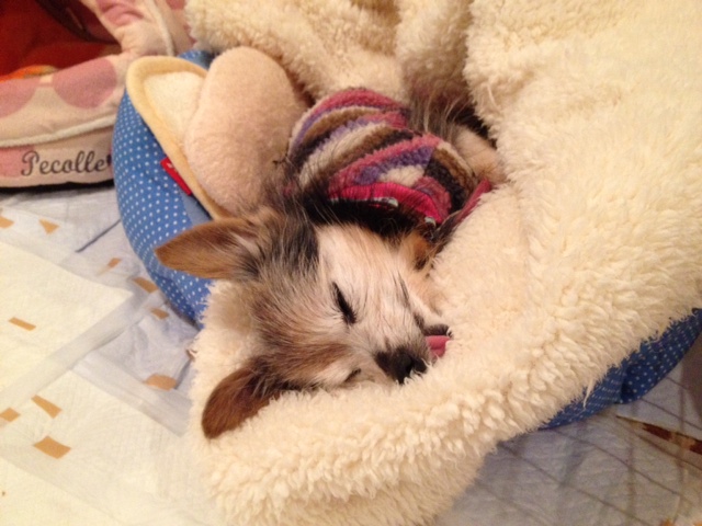 高齢で目も耳もきこえない、ご飯や排泄にも介助が必要になってきたトコたん、残りの犬生は慣れた我が家でこのまま生活するのが一番いいのではないかと思いました。