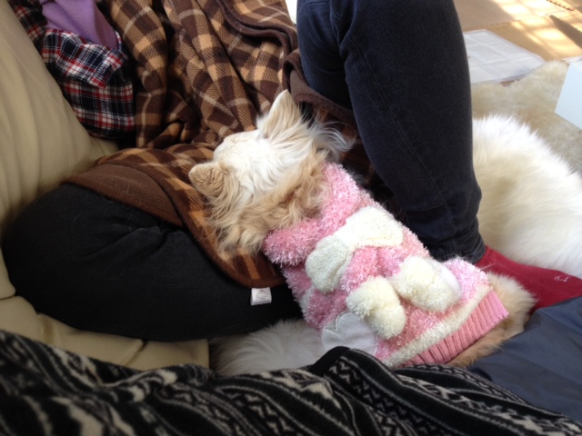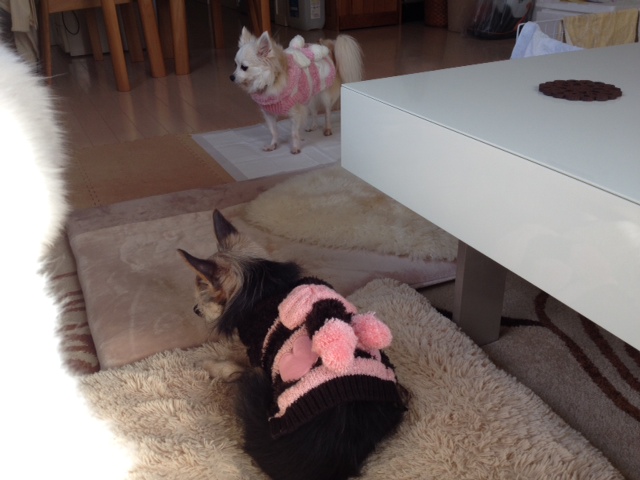 お揃いのあったかお洋服は、こてつの里親さんのプレゼントでしたー♪