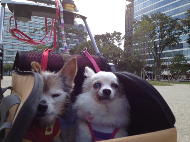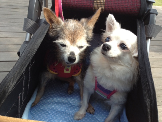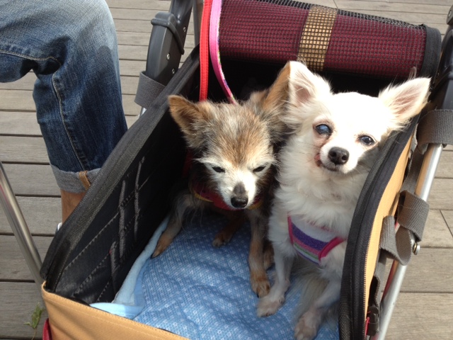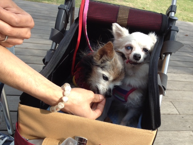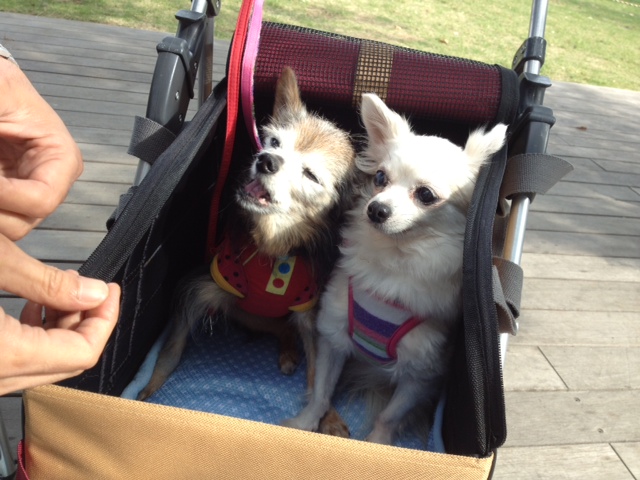 足に負担がかかるといけないので、歩いてはカートインを繰り返しながら、お散歩終了。