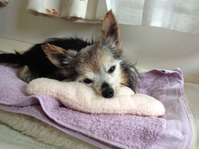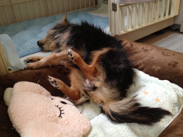 昨夜は、1~2時間おきに寝ては起きてを繰り返し、痛いのかなつらいのかな、と心配で付き添ってましたが、今日は随分落ち着いてたっぷりお昼寝しています。